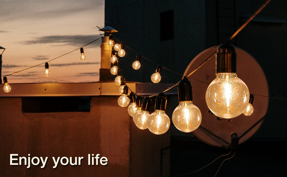 With warm white glow, the string lights create a nice ambiance for different occasions, backyard, house, terrace, pergola, patio,